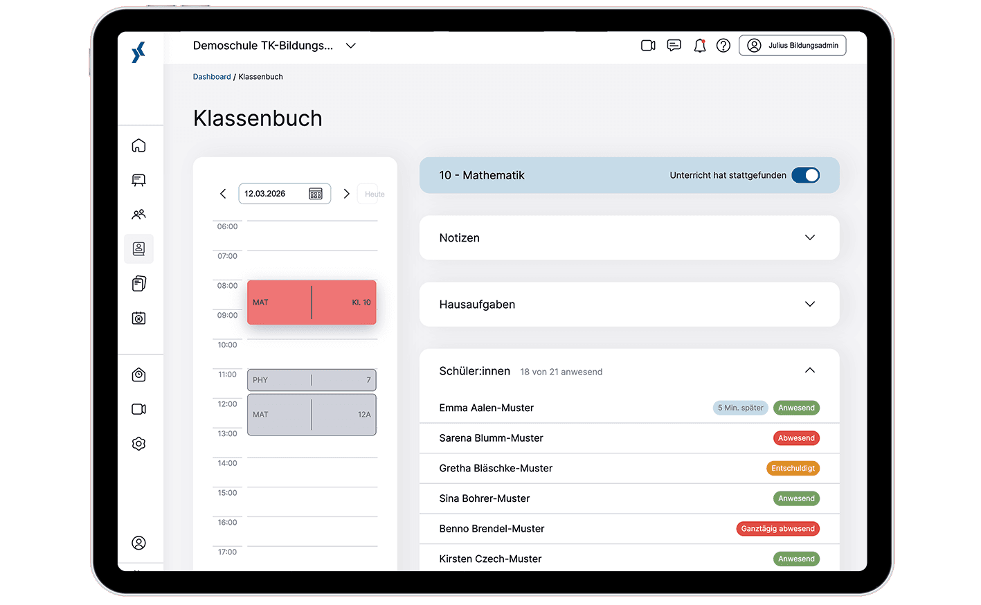 Digitales Klassenbuch und Abwesenheiten